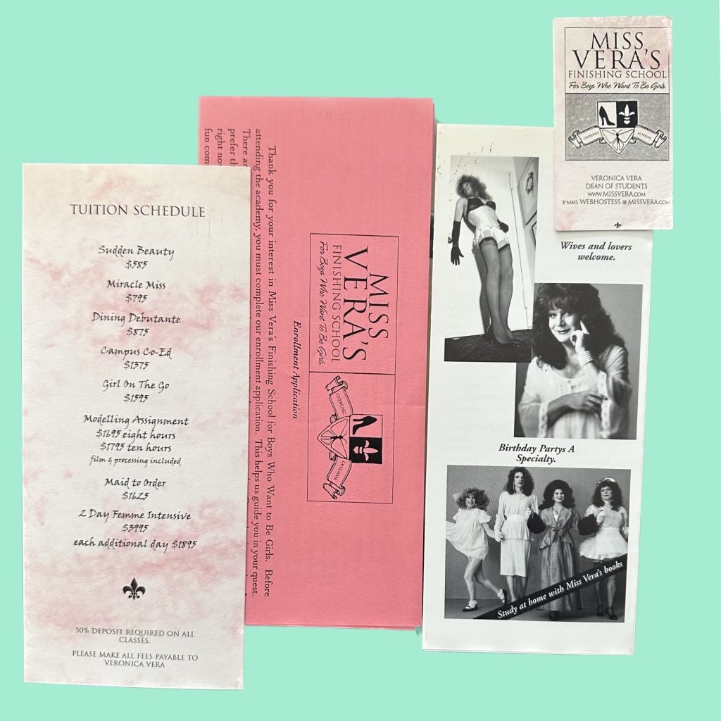 Shortly after that story appeared, I went back to the personal services section and in a perfect example of the right hand not knowing what the left hand was doing, the monitors repeated “We’ve already told you we won’t accept your ad” I immediately referred them to our fabulous story on the Intelligencer page of their very own magazine. I was allowed to place an ad with the full name of my academy. I ran my ad a few times, but by then, I didn’t really need it. That editorial story initiated a publicity snowball that brought print, tv and radio media to our doors. More and more individuals called to schedule our private lessons. Courses ranged from a couple of hours to femme intensives that ran a couple of days. For the callers who were sincere but for various reasons might never attend in person, I created pre-recorded phone lessons. I offered a menu of eight lessons in such courses as “How to walk in high heels”, “How to apply lipstick” “Who is your femmeself?” Callers paid $2.99 per minute. This gave the student a more economical experience and helped subsidize my work. Those phone lessons would become the basis of my first book. Miss Vera’s became known internationally and gender explorers began to visit from across the country and around the world. Every continent was represented in our student body save for Antartica and Oceania. Myself and the academy deans continued personal classes for the next thirty years, during which time I wrote three books based on the school: Miss Vera’s Finishing School For Boys Who Want To Be Girls 1996, Tips, Tales and Teachings from the dean of the world’s first crossdressing academy; Miss Vera’s Crossdress for Success, A resource guide, 2002, and Miss Vera’s CrossGender Fun For All, 2016. All are still available. Though some of the terms have changed, the ideas are still relevant - perhaps even more so. In all of my writing, I’ve emphasized the ways in which nature and nurture, advances in science and medicine, societal stresses, religious repression and more all intersect and contribute to our understanding of gender in the present moment.