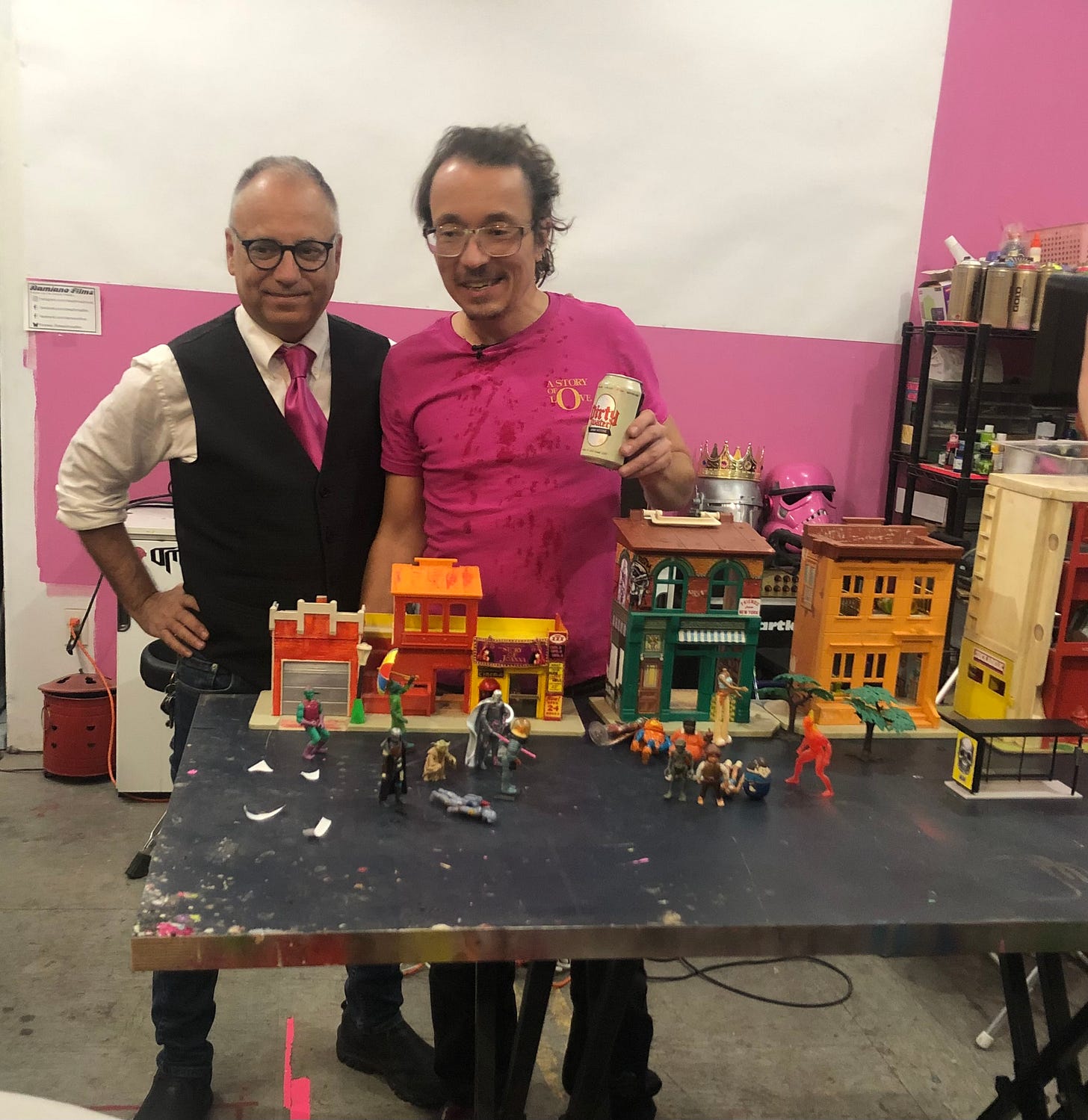 The evening concluded with a presentation by the Sucklord of a work in progress, a town he was building with plastic like leggos. “Here is the movie theater, he said. He updated the marquee from '“Deep Throat ” and adding a tiny poster inside he said “You see they are screening “Story of Joanna.” He placed a tiny audience in seats to represent all of us. He added other shops and buildings then populated the town with weird little characters he had sculpted,formed from his imagination. Sucklord was making his own ideal world, a world that welcomed lust, fun, freaks and curiosity, just as Gerard Damiano Sr. had often envisioned. Sharing these movies and the conversations around them were keeping that vision alive.