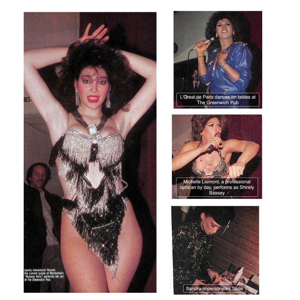 I began to notice the posters when I went for my morning strolls. The Pub is a few blocks from my apartment. Monday: “Latin Night”; Tuesday: “The Gong Show”; Wednesday: “Go-Go Boy Contest” … But what really caught my eye were the portraits of the drag queens–“The Greenwich Pub All-Stars.” In Paris, in Rio, Hong Kong, Bangkok…in all the world’s great capitals, the most spectacular shows are those staged by the drag queens. “There could be a story here,” I thought as I looked at the Pub’s drab but still intriguing facade. What I discovered inside the Greenwich Pub was more than one story; it was a whole world.